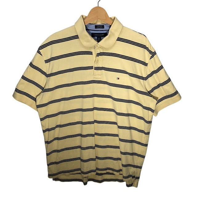 TOMMY HILFIGER トミーヒルフィガー CUSTOM FIT ボーダー柄 半袖ポロシャツ フラッグロゴ刺繡 カンボジア製 XL/TGサイズ イエロー