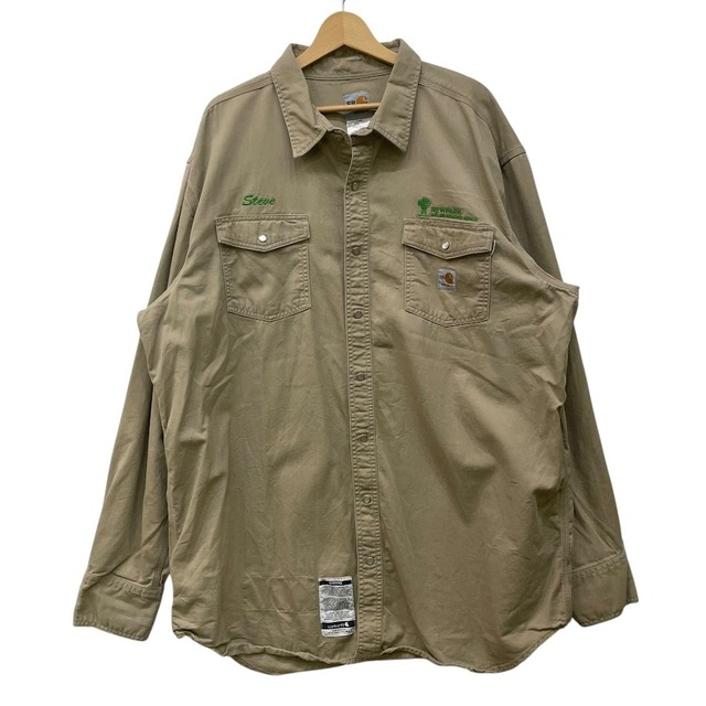Carhartt カーハート FRシリーズ ウエスタンシャツ ワークシャツ 企業ロゴ 長袖 シャツ 企業ロゴ刺繍 オーバーサイズ ビッグシルエット NICARAGUA製 XXLサイズ ライトブラウン