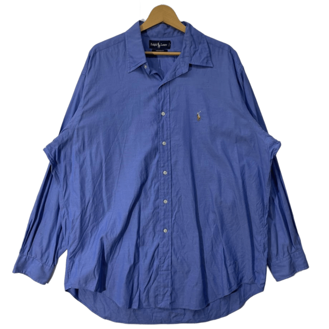 Ralph Lauren ラルフローレン ポニー刺繡 長袖 シャツ ボタンダウン ワンポイント刺繡 ホンコン製 17-35サイズ ブルー