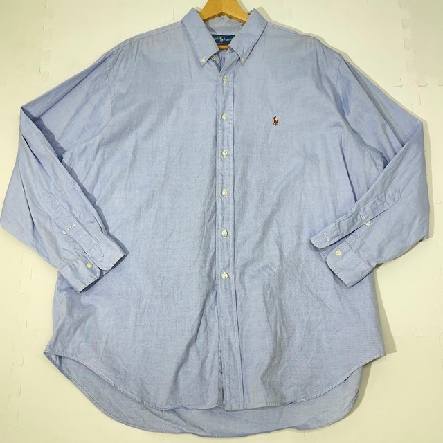 RALPH LAUREN ラルフローレン ストライプ 長袖 シャツ ボタンダウン オーバーサイズ ビッグシルエット ホンコン製 XLサイズ ライトブルー