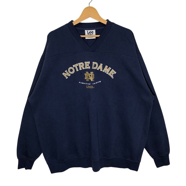 Lee SPORT リースポーツ カレッジ刺繡 ノートルダム大学 スウェット トレーナー 長袖 フロント刺繍 オーバーサイズ ビックシルエット Vネック HONGKONG製 XLサイズ ネイビー