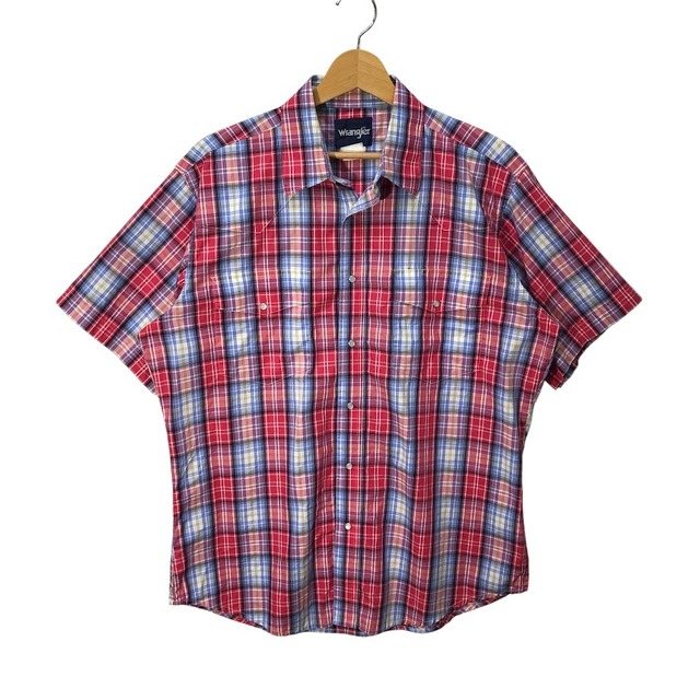 90's vintage 90年代 ヴィンテージ Wrangler ラングラー ウエスタンシャツ チェック柄 ヴィンテージ 半袖 シャツ オーバーサイズ ビッグサイズ バングラデシュ製 L/G/Gサイズ レッド