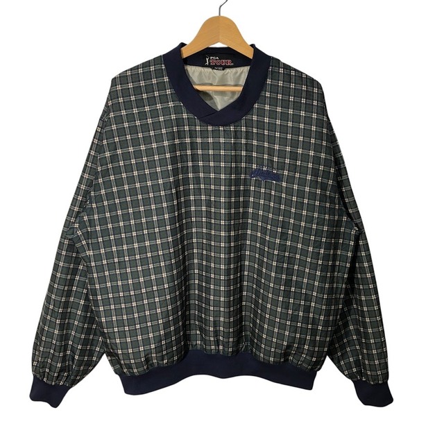 90~00's vintage 90~00年代 ヴィンテージ PGA TOUR ナイロンプルオーバーシャツ チェック柄 全米ゴルフ協会 スポーツ プルオーバー 長袖 企業ロゴ刺繍 ワンポイント刺繡 オーバーサイズ TAIWAN製 Lサイズ グリーン ネイビー