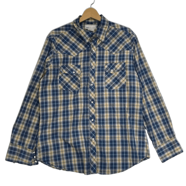 70~80's/70~80年代 Wrangler/ラングラー WRANCHER SHIRTS ウエスタンシャツ チェック 長袖 シャツ スナップボタンダウン メンズ ブルー/イエロー /その他