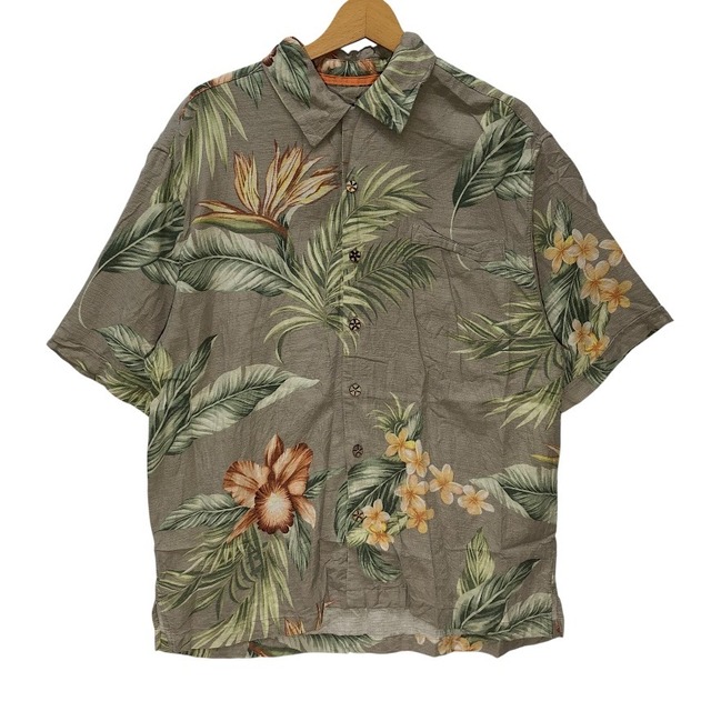 Jamaica Jaxx ジャマイカ ジャックス アロハシャツ シルクシャツ ハイビスカス 半袖シャツ ボタンダウン オーバーサイズ ビッグシルエット China製 Lサイズ ベージュ ブラウン