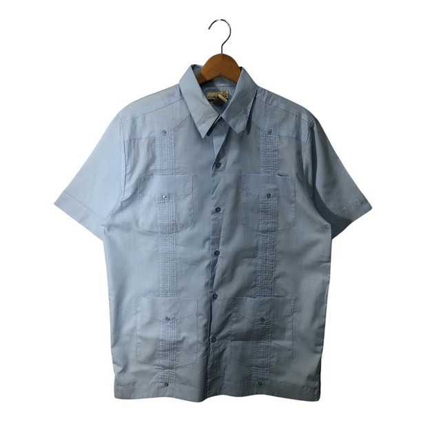 CUBANITA キューバシャツ メキシカン 開襟 半袖 シャツ ボタンダウン フロント刺繍 CHINA製 Lサイズ ライトブルー