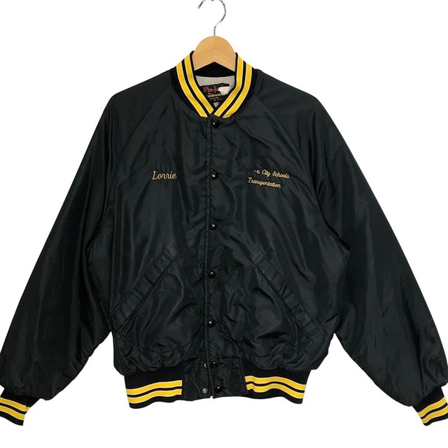 Pla-jac by Dunbrooke 80年代/80's ヴィンテージ USA製 スタジャン アウター ナイロンジャケット フロント刺繍 Lサイズ ブラック イエロー