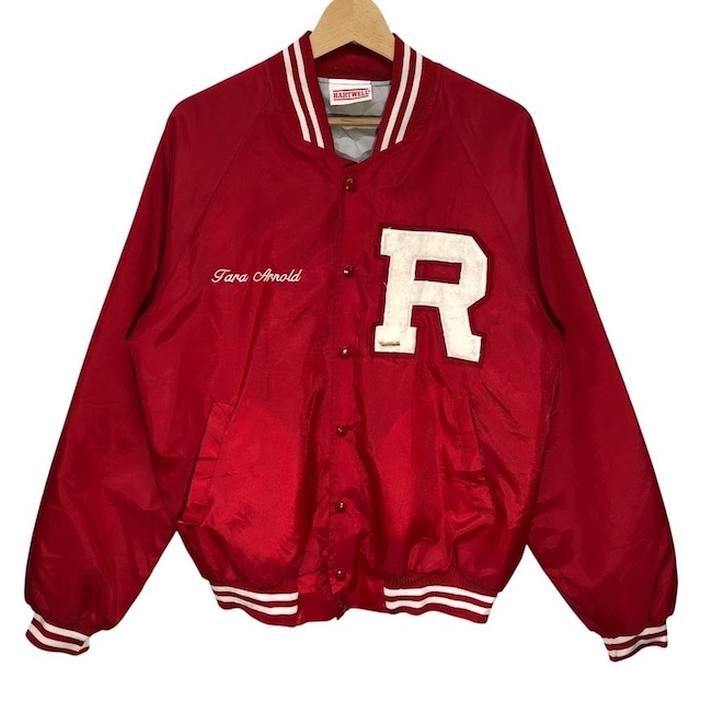 90's vintage 90年代 ヴィンテージ HARTWELL ナイロンジャケット スタジャン ブルゾン 胸元刺繍 バック刺繡 ピンバッジ付 レッド