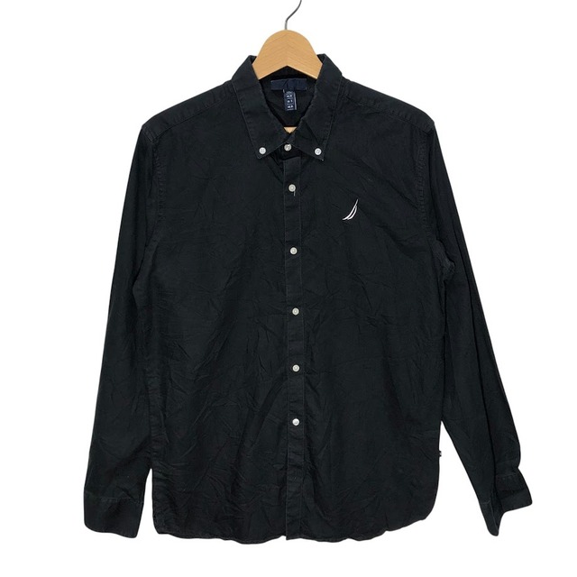 NAUTICA/ノーティカ 長袖シャツ 無地 ボタンダウン ワンポイント刺繡 India製 Sサイズ ブラック