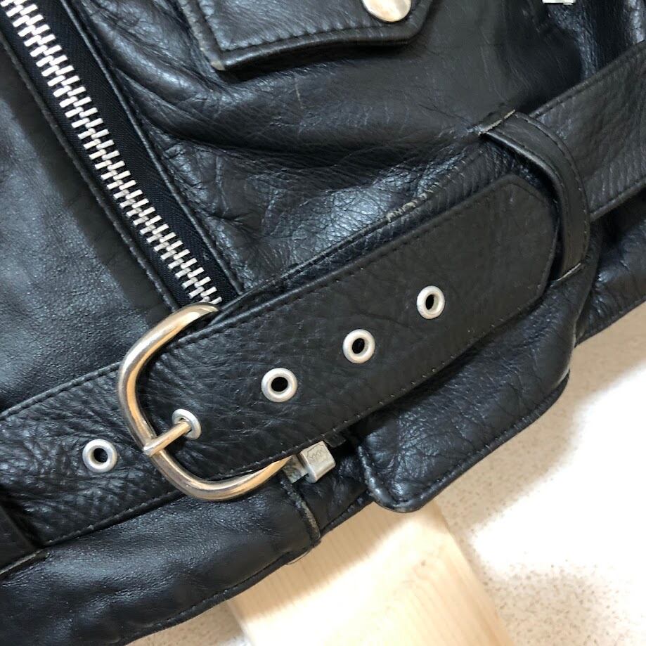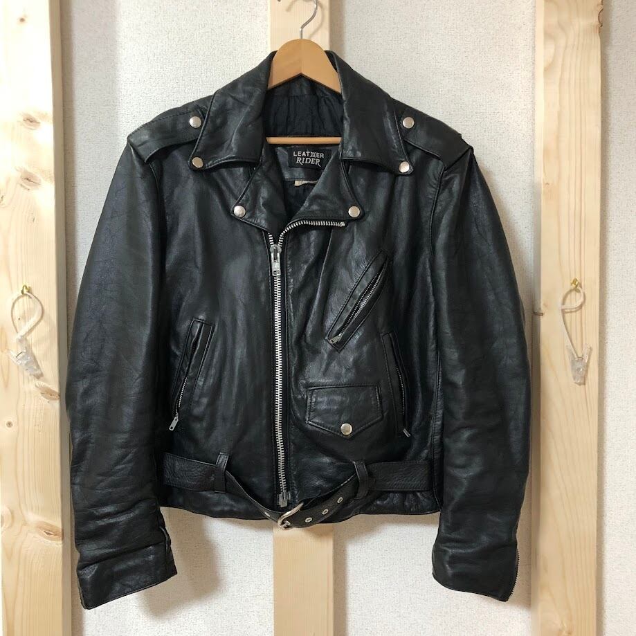 LEATHER RIDER ダブルライダースジャケット レザージャケット made in USE ウエストベルト エポレット アメジャン バイカー 革ジャン vintage USA製 メンズ 38 ブラック