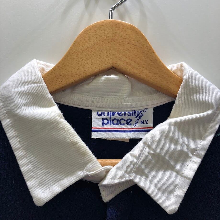 80's university place N.Y USA製 80年代 ヴィンテージ ラガーシャツ 長袖シャツポロシャツ Penstute 80'S USA製 メンズ L ネイビー