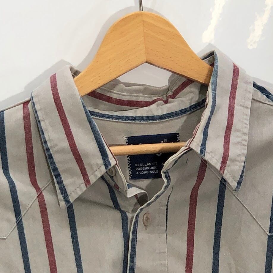 商品名:80's Wrangler/80年代 vintage ヴィンテージ ラングラー ワークシャツ ダブルポケット ストライプ 長袖 シャツ ボタンダウン メンズ グレー/レッド/ブルー