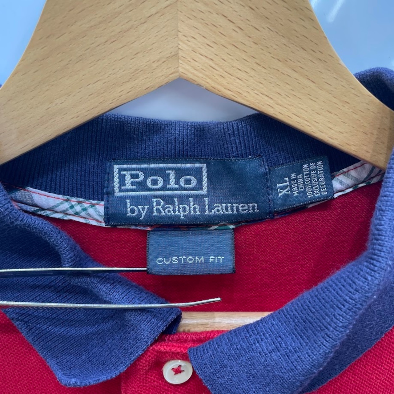 商品名:90's Polo by Ralph Lauren 90年代 ポロバイラルフローレン ビッグポニー3刺繍 COSTOM FIT 半袖 ポロシャツ ワンポイント刺繡 オーバーサイズ ビッグサイズ CHINA製 XLサイズ レッド ネイビー
