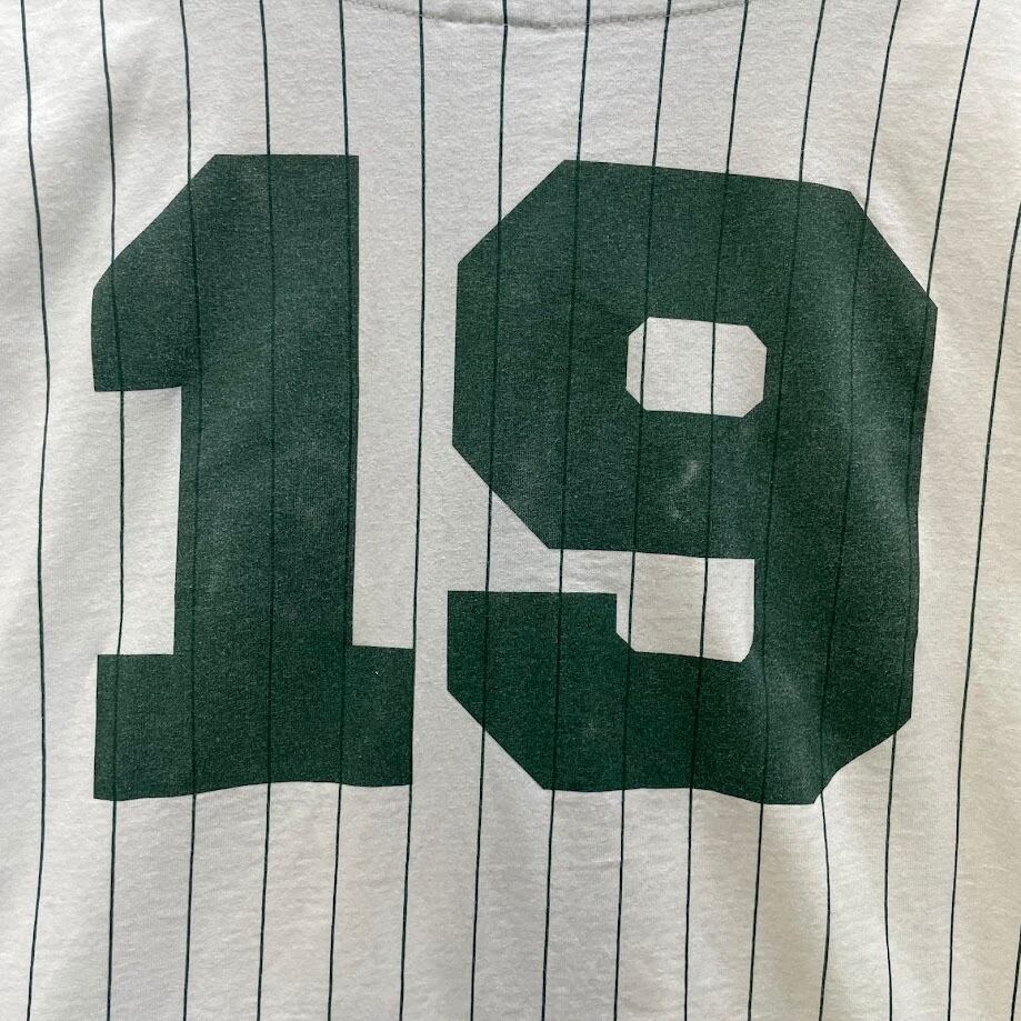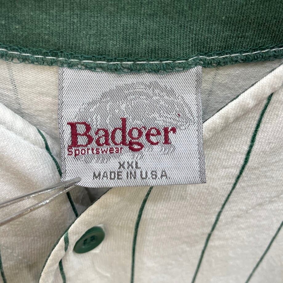90's Badger ベースボールシャツ ユニフォーム ゲームシャツ 90年代 LET’S PLAY2 AIR08 A2R08 ヴィンテージ 半袖シャツ ボタンダウン バックプリント ワンポイント刺繡 オーバーサイズ XXLサイズ ホワイト グリーン