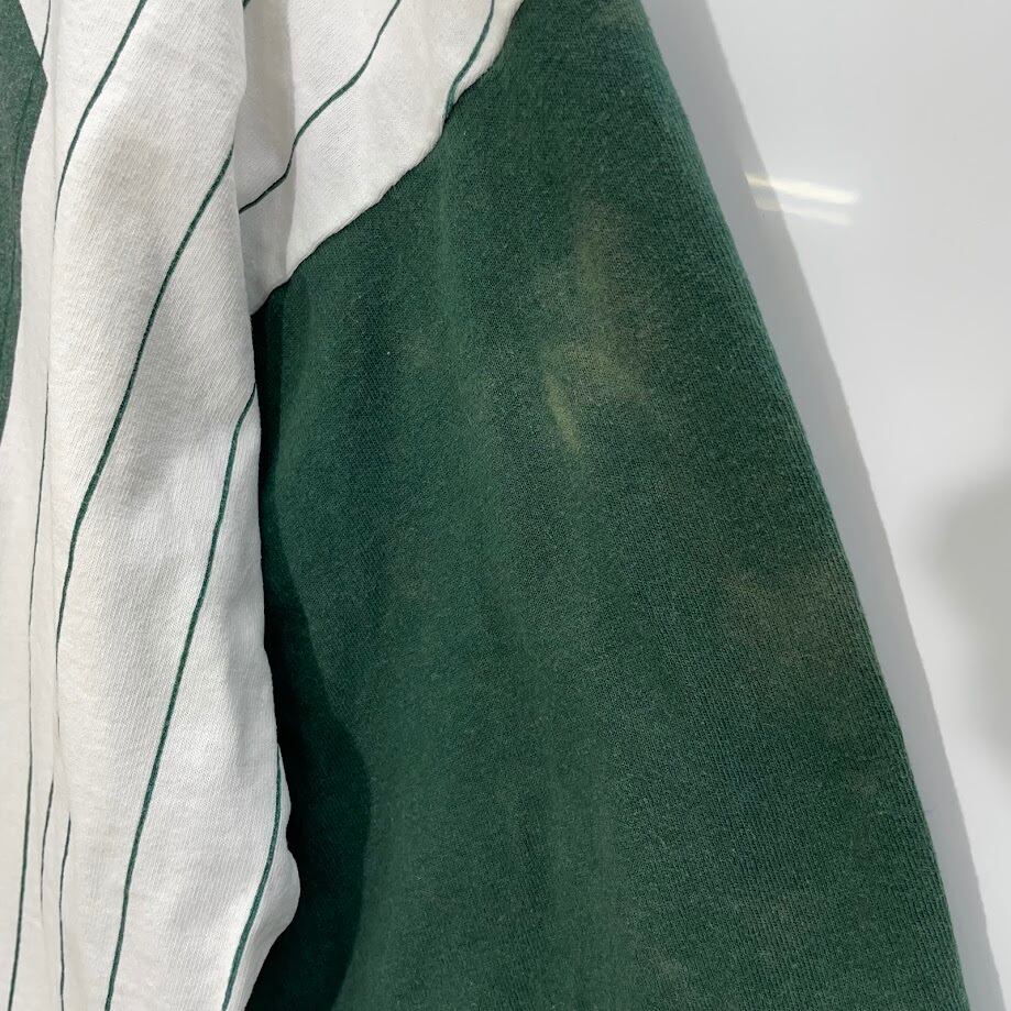 商品名: 90's Badger ベースボールシャツ ユニフォーム ゲームシャツ 90年代 LET’S PLAY2 AIR08 A2R08 ヴィンテージ 半袖シャツ ボタンダウン バックプリント ワンポイント刺繡 オーバーサイズ XXLサイズ ホワイト グリーン