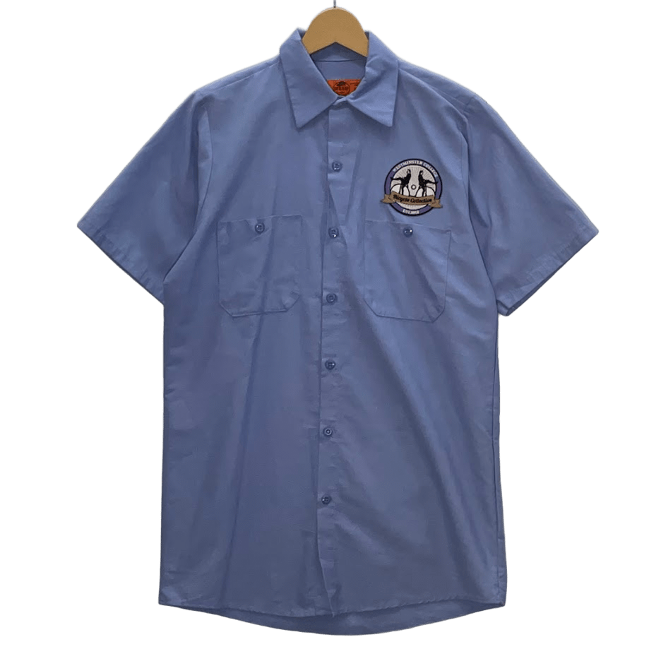 RED KAP レッドキャップ ワークシャツ ダブルポケット 企業ワッペン 企業ロゴ刺繍 半袖 Tシャツ HONDURAS製 Sサイズ ブルー | OASISCLOTHING 海外古着屋【公式】通販サイト