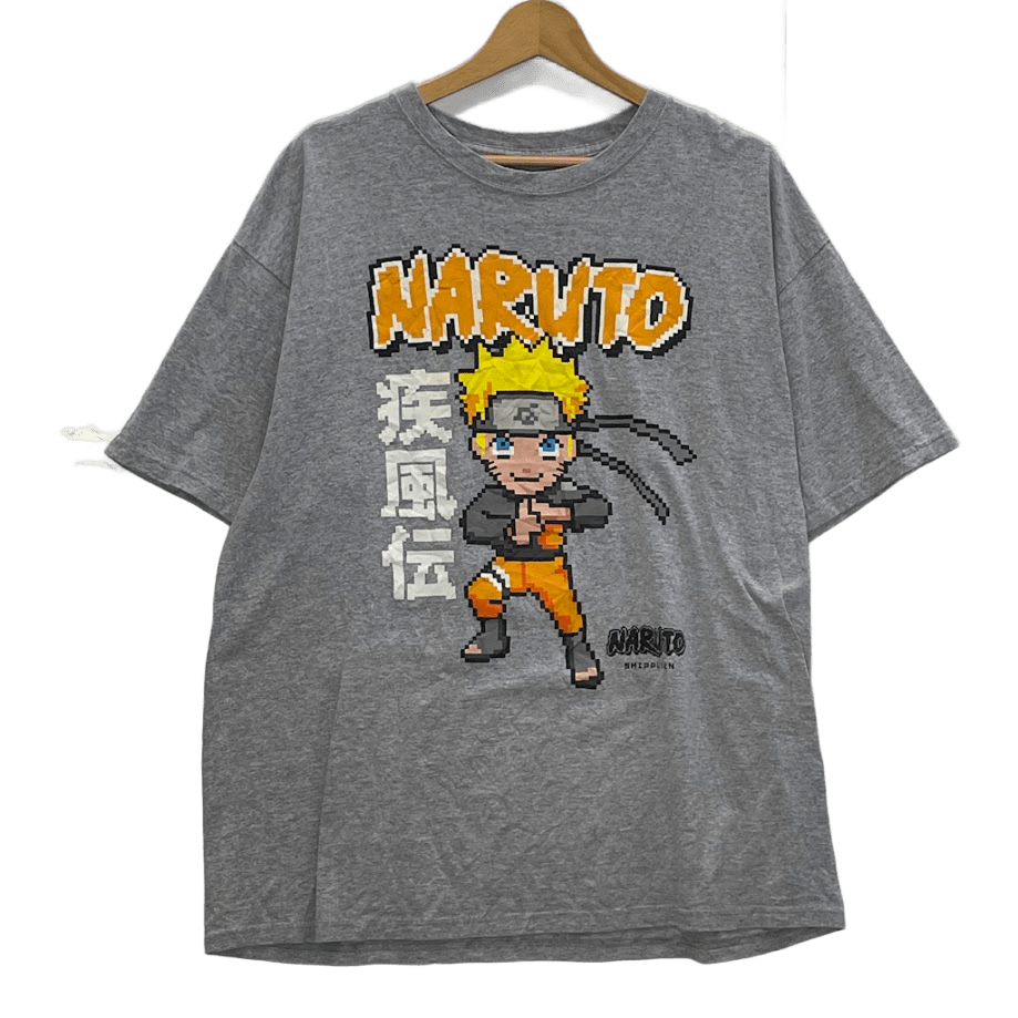 00's NARUTO 疾風伝 ナルト ドット絵 アニメTシャツ キャラクター 当時物 キャラT フロントプリント オーバーサイズ ビッグシルエット XLサイズ メキシコ製 グレー | OASISCLOTHING 海外古着屋【公式】通販サイト