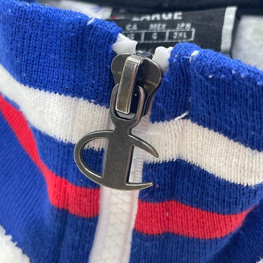 90's Champion 90年代 チャンピオン パイル地 ブルゾン トラックジャケット ヴィンテージ ジャージ ライトアウター ワンポイント刺繍 オーバーサイズ カンボジア製 Lサイズ ホワイト ブルー レッド | OASISCLOTHING 海外古着屋【公式】通販サイト
