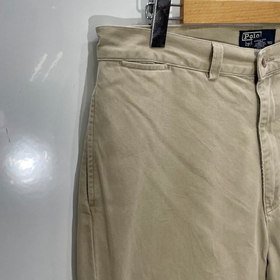 90's vintage Polo by Ralph Lauren 90年代 ポロバイラルフローレン ワイドチノパンツ ノータック ボトム ヴィンテージ オーバーサイズ ビッグシルエット DOMINICAN REPUBLIC製 ベージュ | OASISCLOTHING 海外古着屋【公式】通販サイト