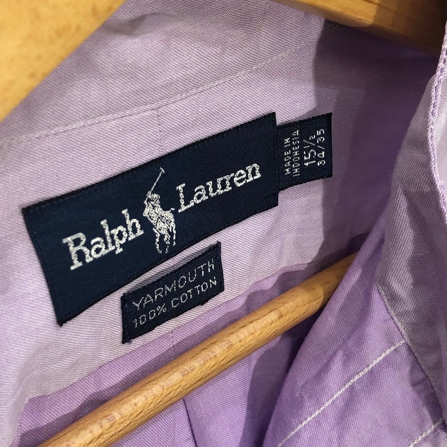 商品名:Ralph Lauren ラルフローレン YARMOUTH ノーカラーシャツ ポニー刺繡 長袖 シャツ ボタンダウン ワンポイント刺繍 オーバーサイズ インドネシア製 15 1/2サイズ パープル