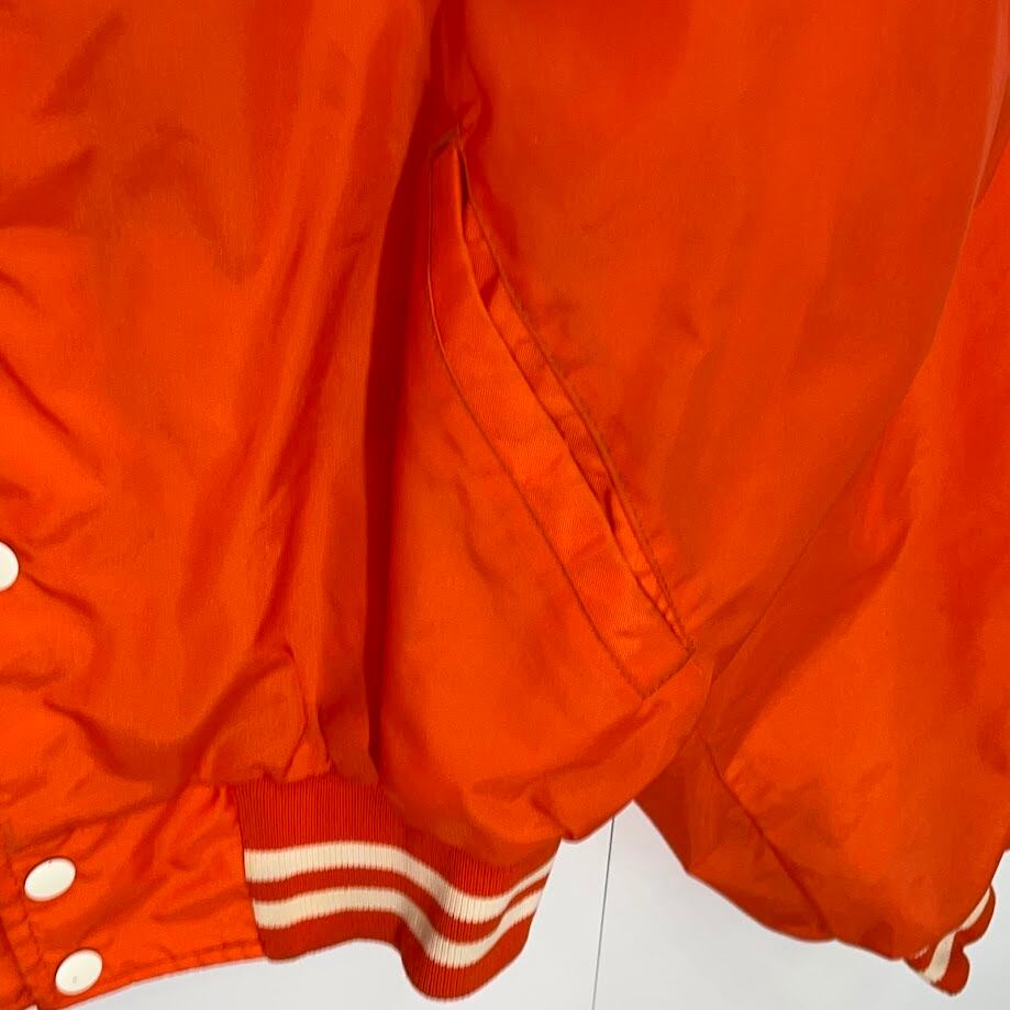 商品名:90's vintage 90年代 ヴィンテージ HOWE スタジャン ナイロンジャケット ブルゾン 企業ロゴワンポイント刺繡 USA製 XXLサイズ オレンジ