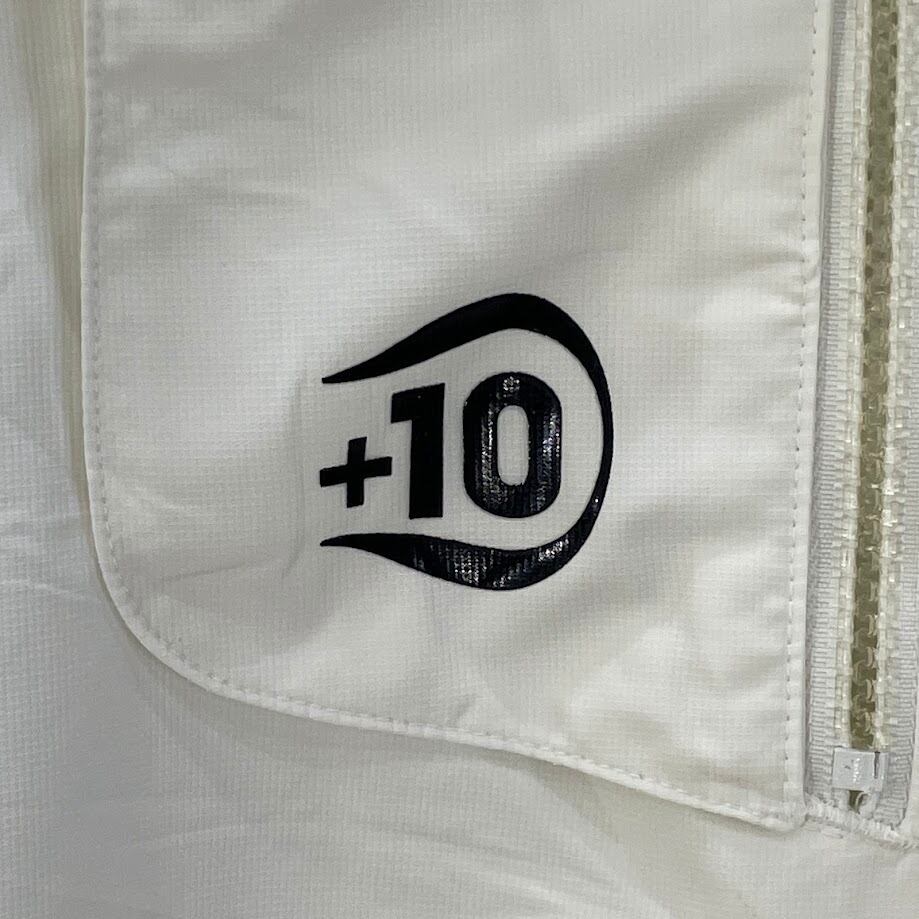 adidas アディダス ナイロンプルオーバー ハーフジップ +10 ナイロンジャケット スリーライン フード ドローコード ワンポイントプリント オーバーサイズ ビッグシルエット フィリピン製 Lサイズ ホワイト ブルー