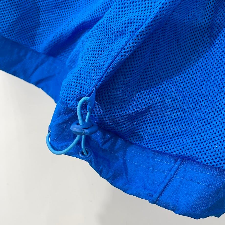 商品名: adidas アディダス フランスサッカークラブ ナイロンジャケット オリンピック マルセイユ DROIT AU BUT スリーライン フード ライトアウター ドローコード 企業ロゴプリント オーバーサイズ ビッグシルエット CHINA製 Lサイズ ブルー
