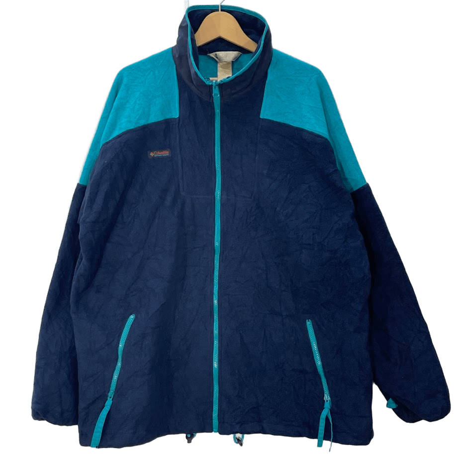 80's Columbia 80年代 コロンビア 三角タグ アウトドア ヴィンテージ フリースジャケット ライトアウター ワンポイント刺繡 ビックシルエット オーバーサイズ ターコイズ ネイビー | OASISCLOTHING 海外古着屋【公式】通販サイト