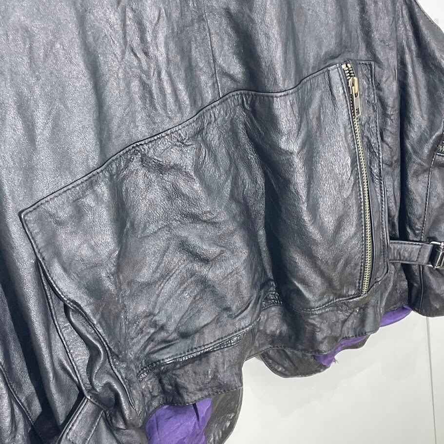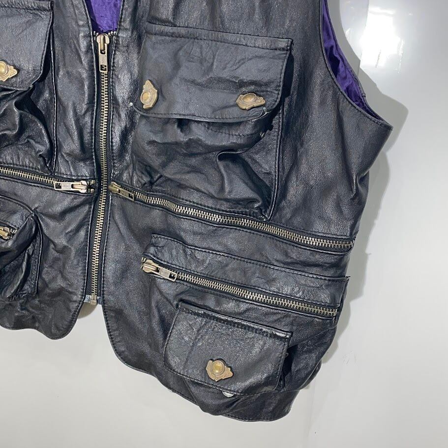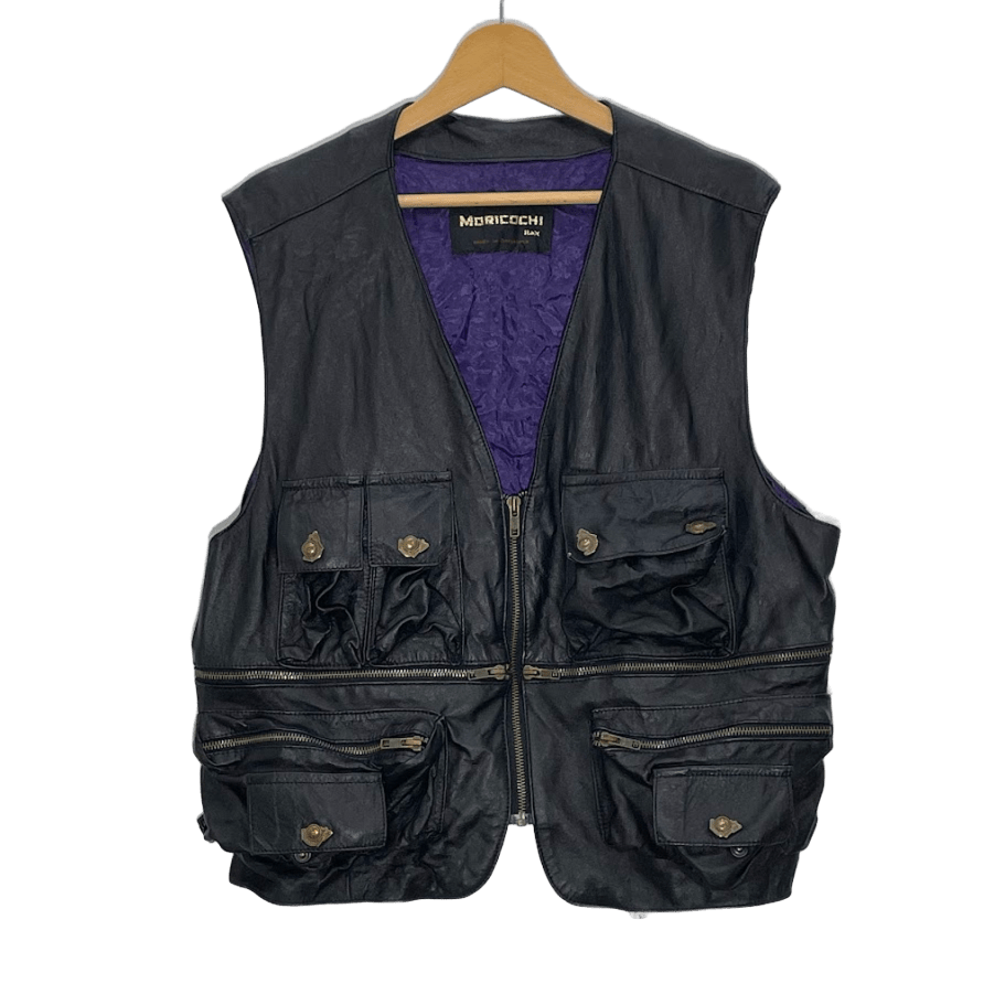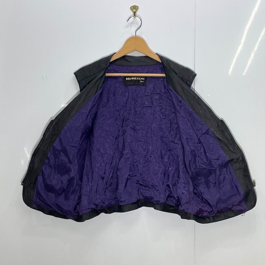 商品名:MORICOCHI Haly ヴィンテージ レザーベスト バイカー バルセロナ製 ブラック パープル