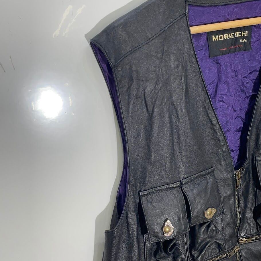 MORICOCHI Haly ヴィンテージ レザーベスト バイカー バルセロナ製 ブラック パープル