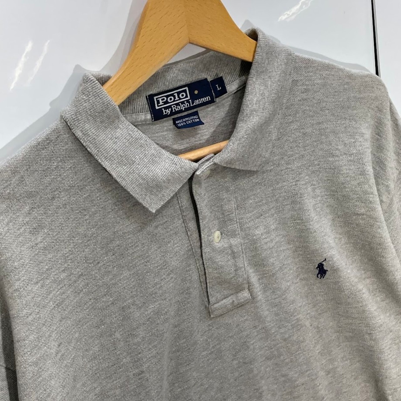商品名:90’s vintage 90年代 ヴィンテージ Polo by Ralph Lauren ポロバイラルフローレン ポニー刺繍 長袖 ポロシャツ ワンポイント刺繡 オーバーサイズ ビックシルエット フィリピン製 Lサイズ グレー