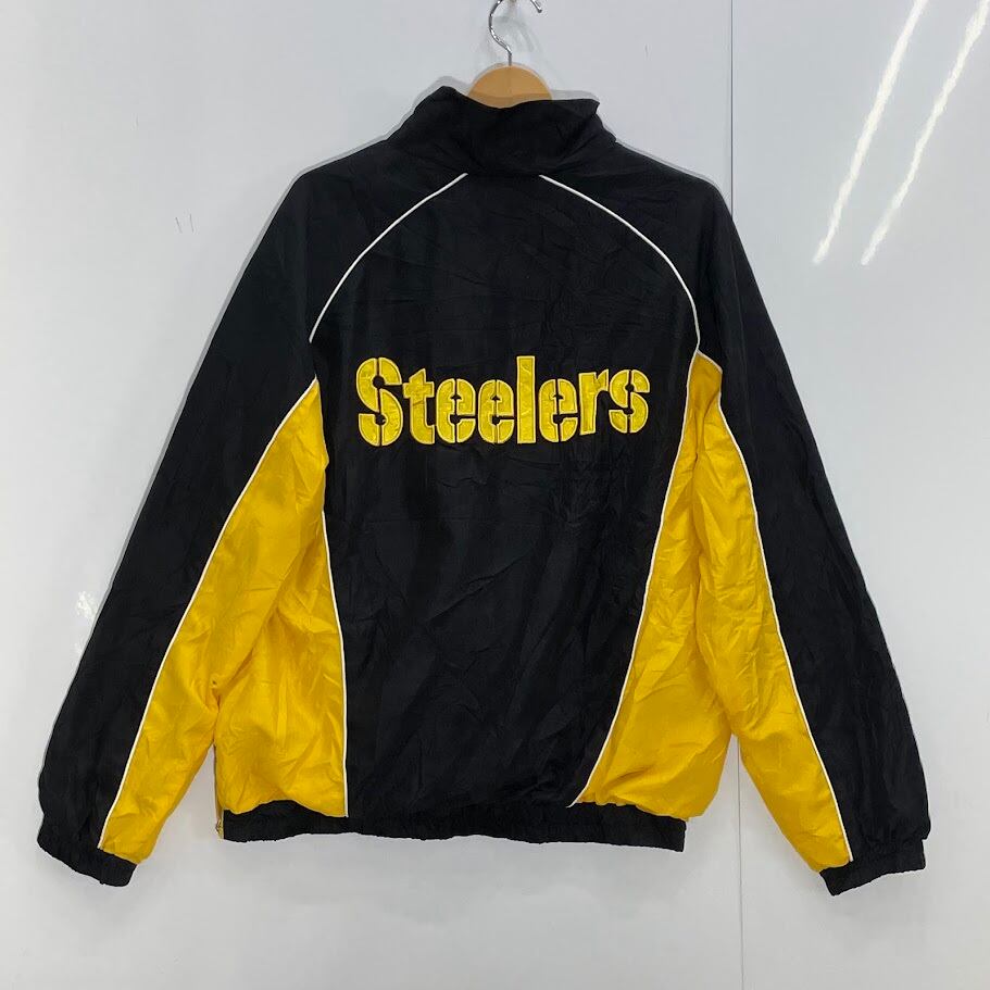 商品名:90's NFL Steelers 90年代 vintage ピッツバーグ・スティーラーズ スタジアムジャケット プロチーム アメフト ナイロンリブ フロントバックプリント刺繍 CHINA製 メンズ M ブラック/イエロー