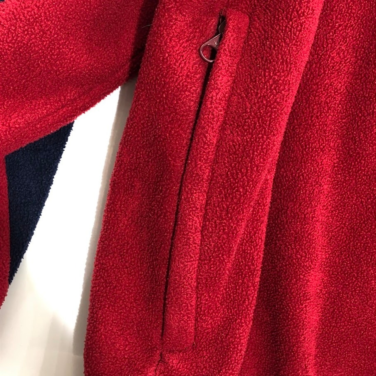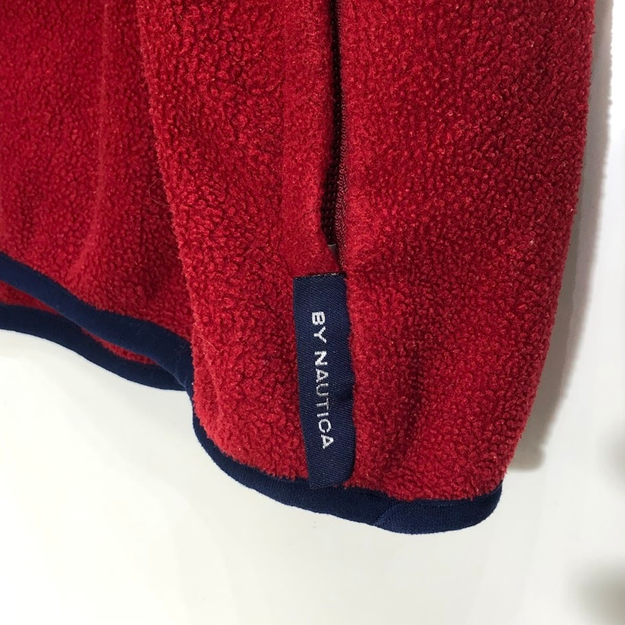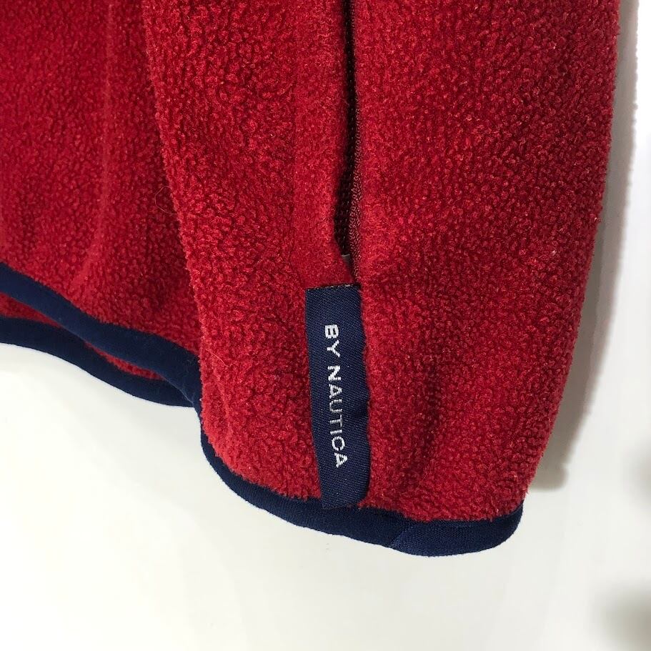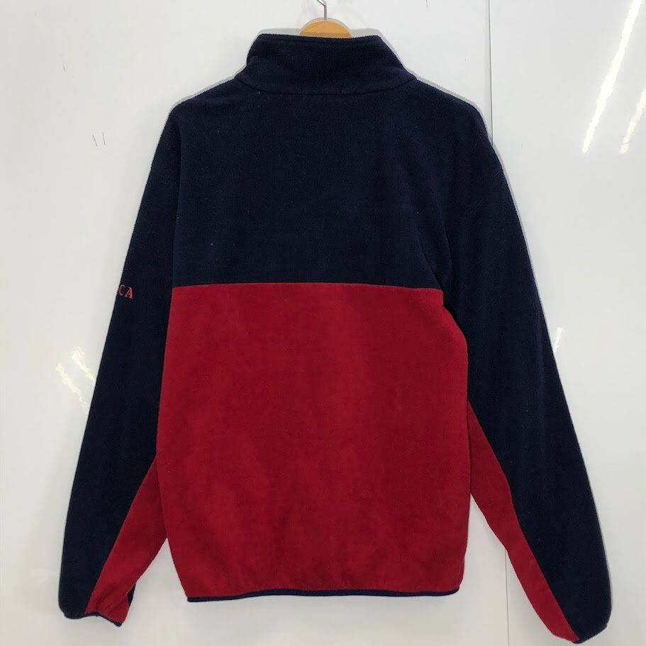 商品名:90’s NAUTICA 90年代 ハーフジップ フリースジャケット プルオーバー ライトアウター ワンポイント刺繍 オーバーサイズ ビッグシルエット USA製 S/Pサイズ ブラック レッド