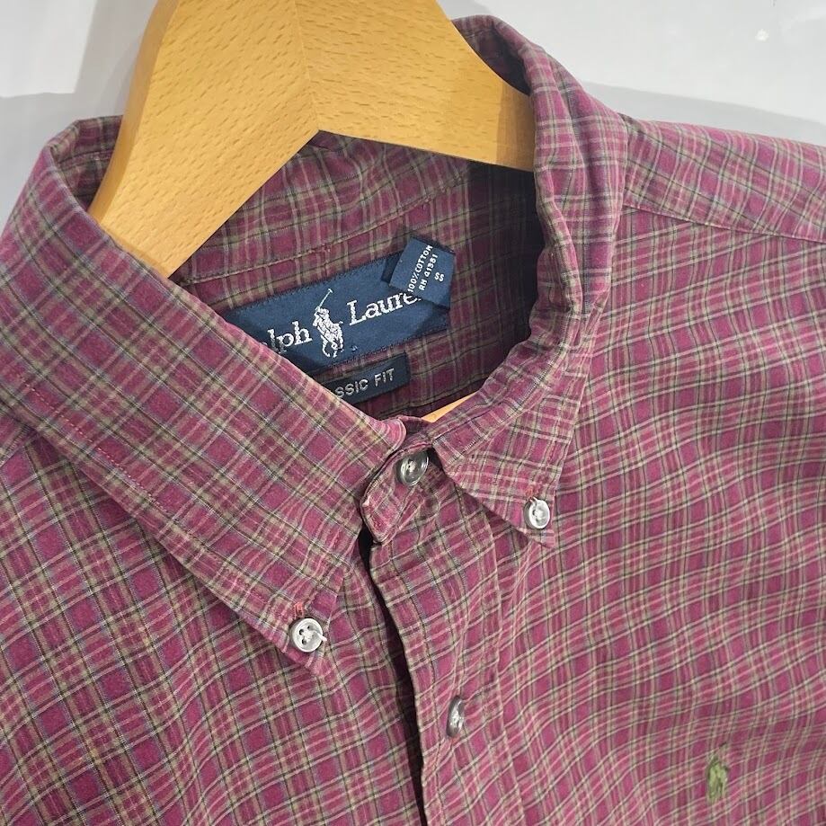 90'vintage 90年代 ヴィンテージ Ralph Lauren ラルフローレン ポニー刺繡 長袖 シャツ ワンポイント刺繡 オーバーサイズ ビックシルエット ホンコン製 Lサイズ ワインレッド | OASISCLOTHING 海外古着屋【公式】通販サイト
