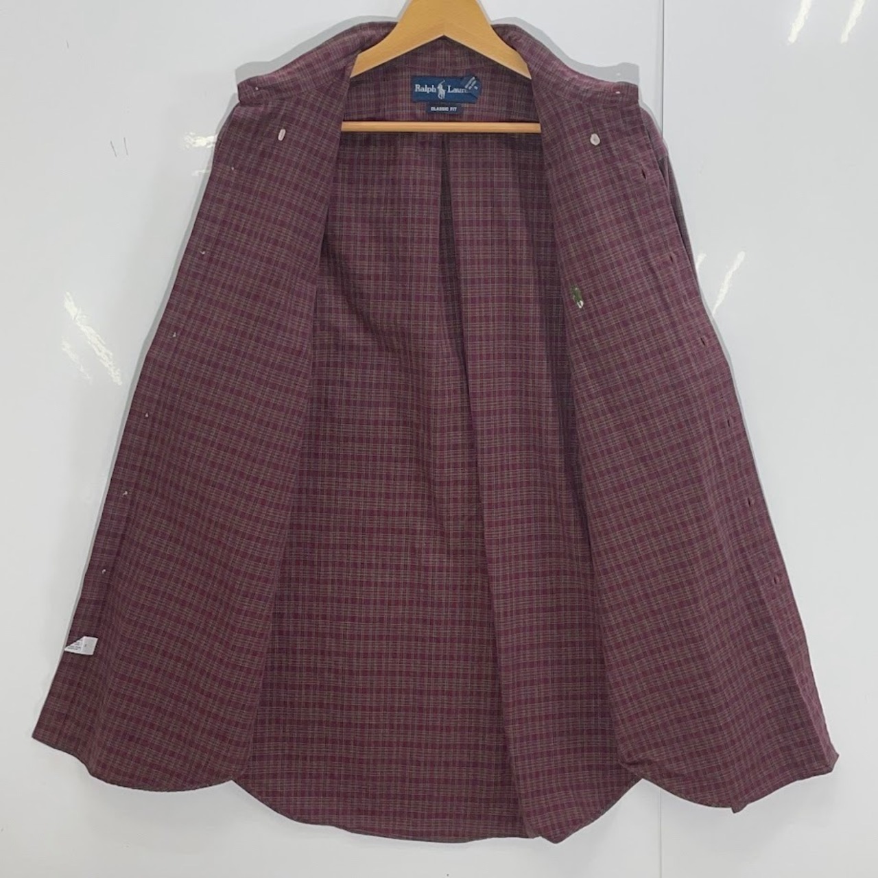 商品名:90'vintage 90年代 ヴィンテージ Ralph Lauren ラルフローレン ポニー刺繡 長袖 シャツ ワンポイント刺繡 オーバーサイズ ビックシルエット ホンコン製 Lサイズ ワインレッド