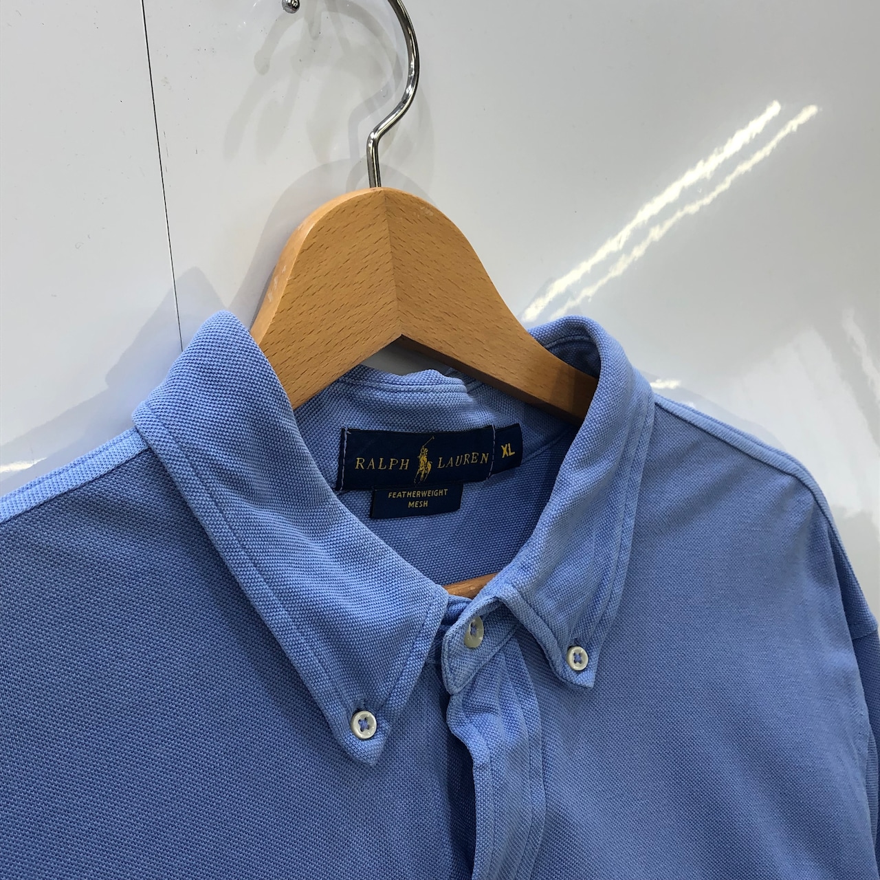 商品名:RALPH LAUREN ラルフローレン FEATHERWEIGHT MESH ポニー刺繍 長袖シャツ ボタンダウン ワンポイント刺繍 ベトナム製 XLサイズ ブルー