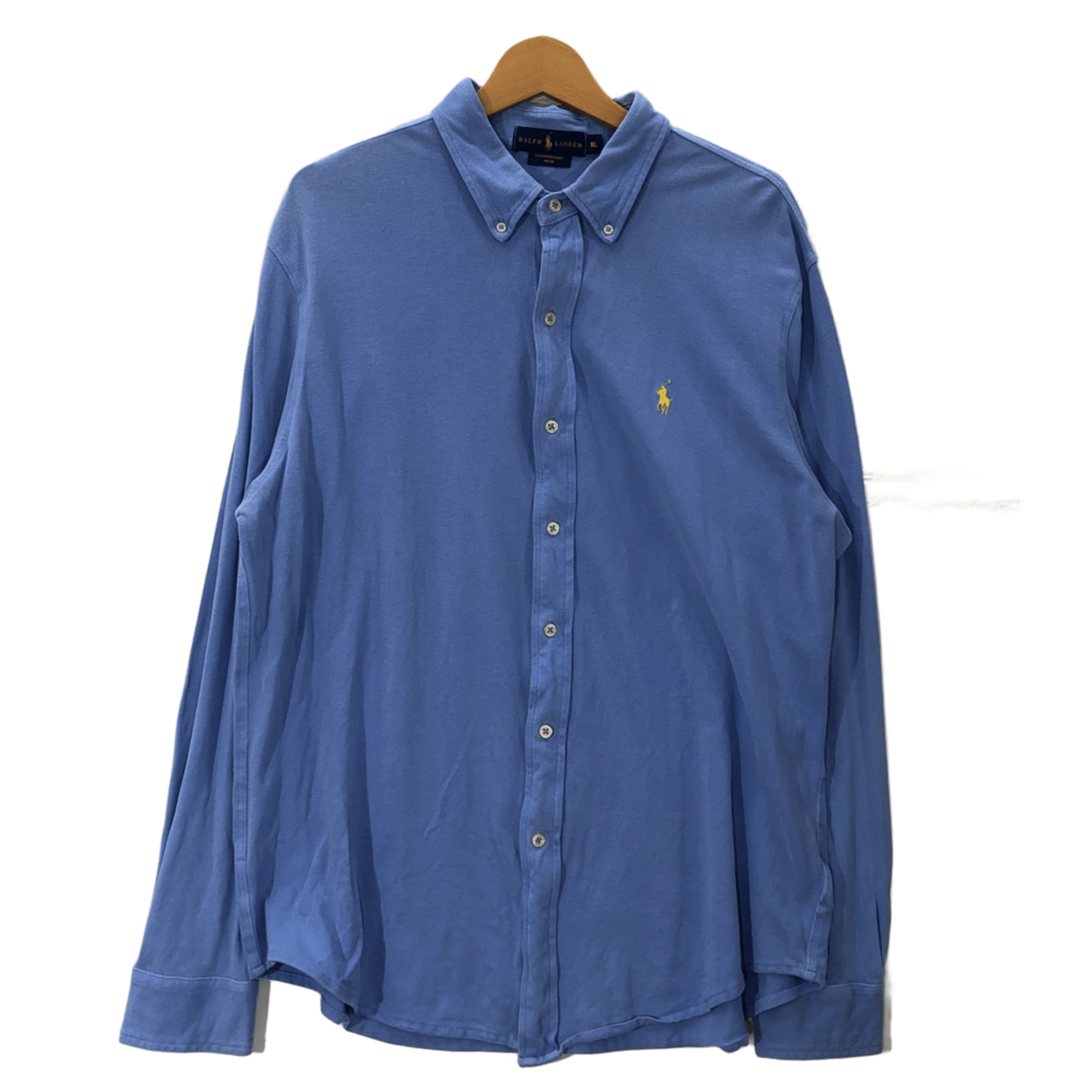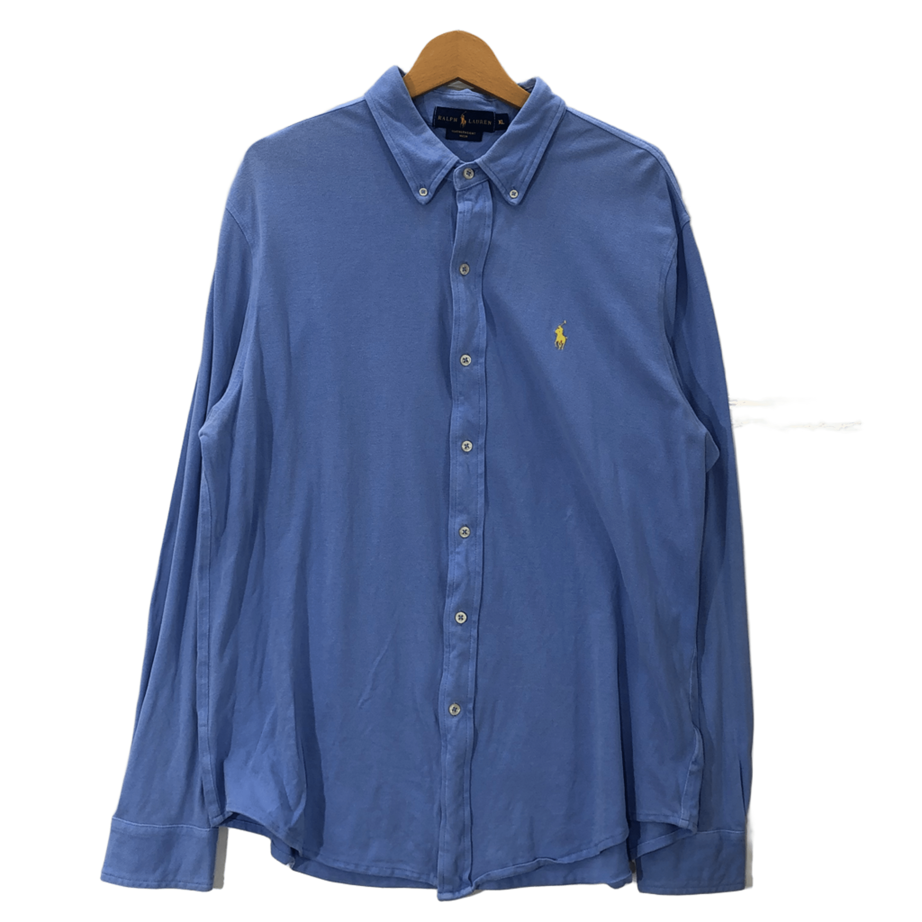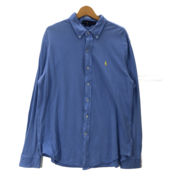 RALPH LAUREN ラルフローレン FEATHERWEIGHT MESH ポニー刺繍 長袖シャツ ボタンダウン ワンポイント刺繍 ベトナム製 XLサイズ ブルー