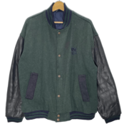 商品名:RSC企業刺繍 レザー切り替え Vスタジャン キルティングライナー アウター オーバーサイズ ビッグシルエット BRUTN製 Lサイズ グリーン