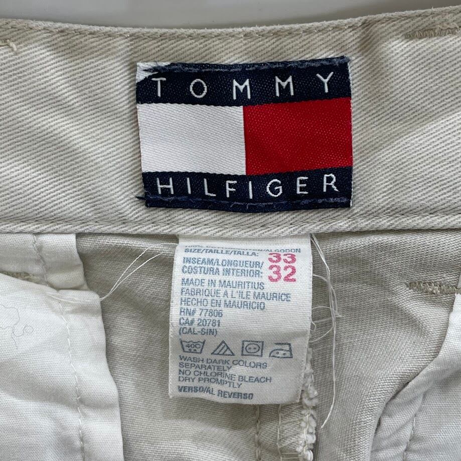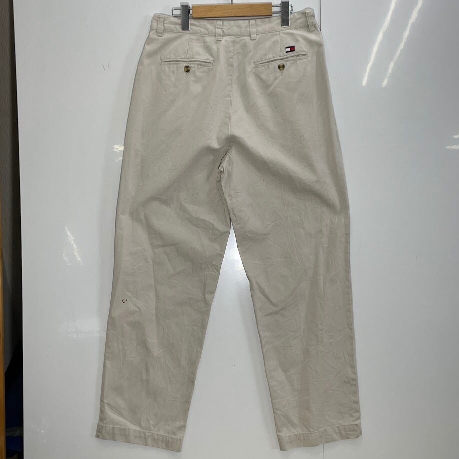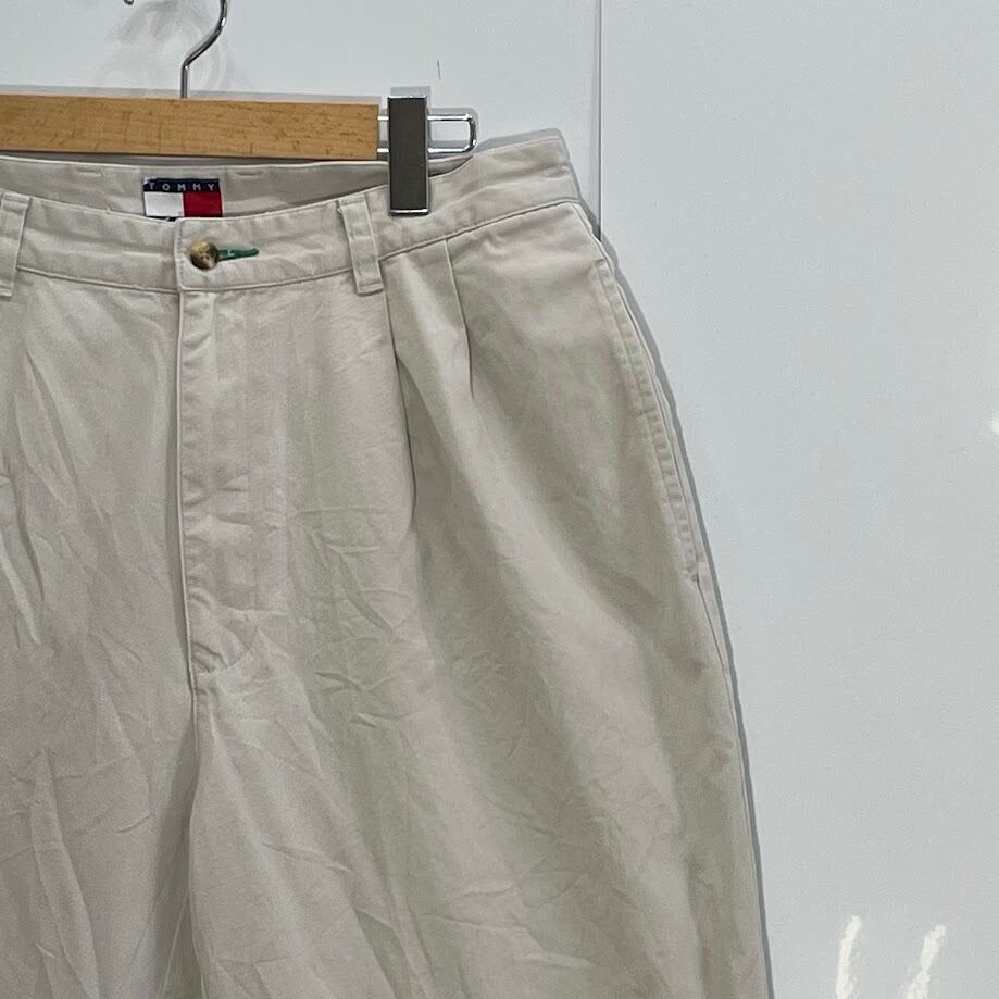商品名:90's TOMMY HILFIGER/90年代 トミーヒルフィガー ツータックパンツ チノパンツ ボトム スラックス MAURITIUS製 メンズ 33×32 アイボリー/ホワイトベージュ