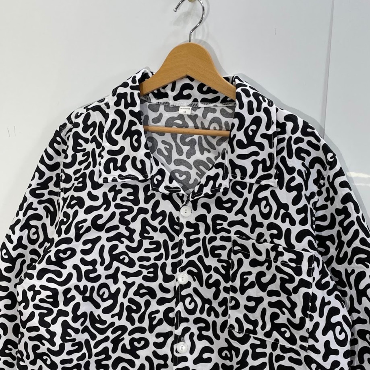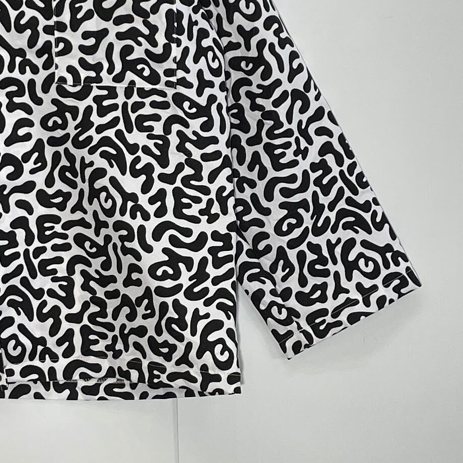 商品名:80~90's/80~90年代ヴィンテージ 韓国軍 アーミー コリアン バクテリア柄 カモ ミリタリーシャツ 長袖 シャツ ボタンダウン フロントバックプリント CHINA製 メンズ ホワイト/ブラック