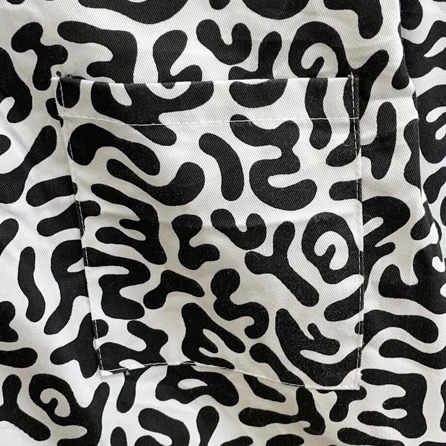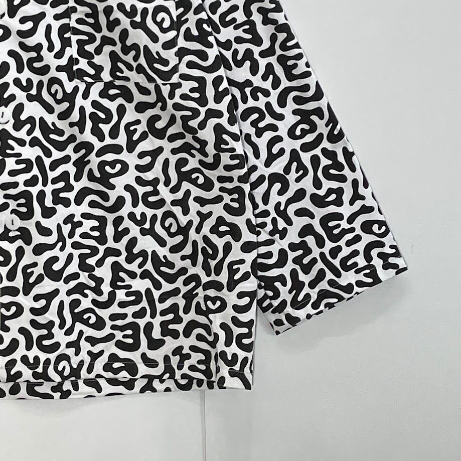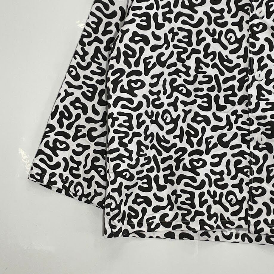 商品名:80~90's/80~90年代ヴィンテージ 韓国軍 アーミー コリアン バクテリア柄 カモ アメーバ Army 総柄 ミリタリー シャツ 長袖 シャツ ボタンダウン フロントバックプリント CHINA製 メンズ ホワイト/ブラック