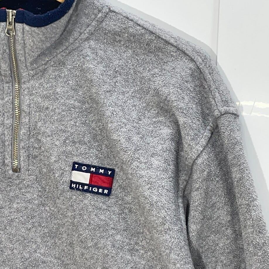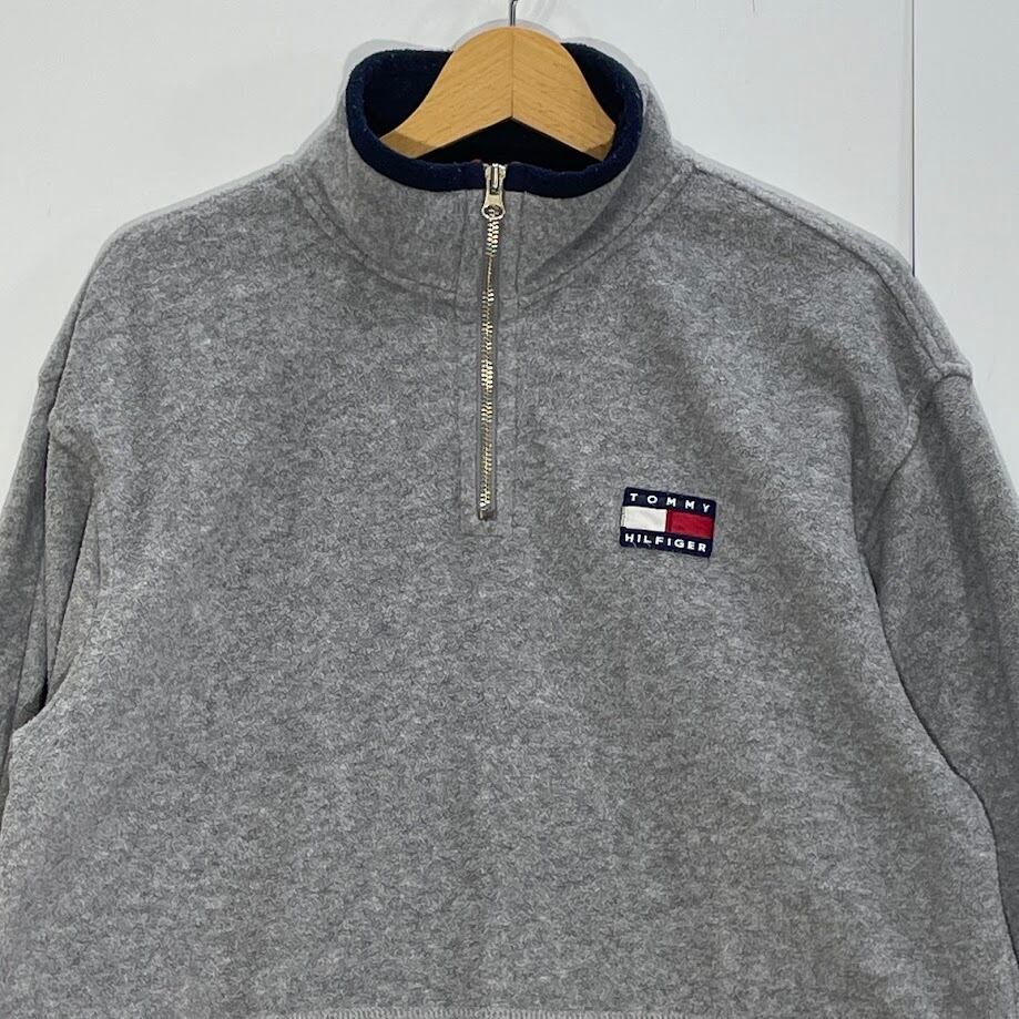 90's TOMMY HILFIGER/90年代 トミーヒルフィガー ハーフジップトレーナー フリース フラッグタグ 長袖 ワンポイント刺繡 オーバーサイズ ビッグシルエット タイワン製 メンズ XL グレー | OASISCLOTHING 海外古着屋【公式】通販サイト