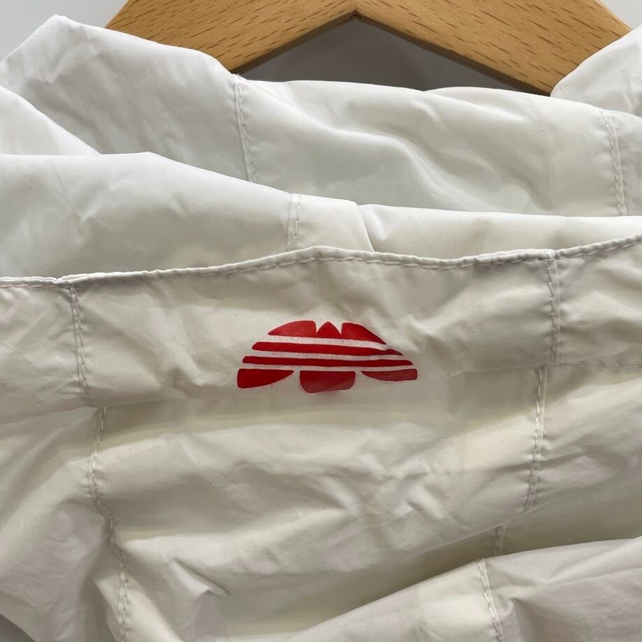 商品名:adidas/アディダス ナイロンジャケット ブルゾン ウインドブレーカー スリーライン マルチカラー フード ライトアウター ワンポイント刺繡 メンズ L ホワイトグレー/レッド/ブルー