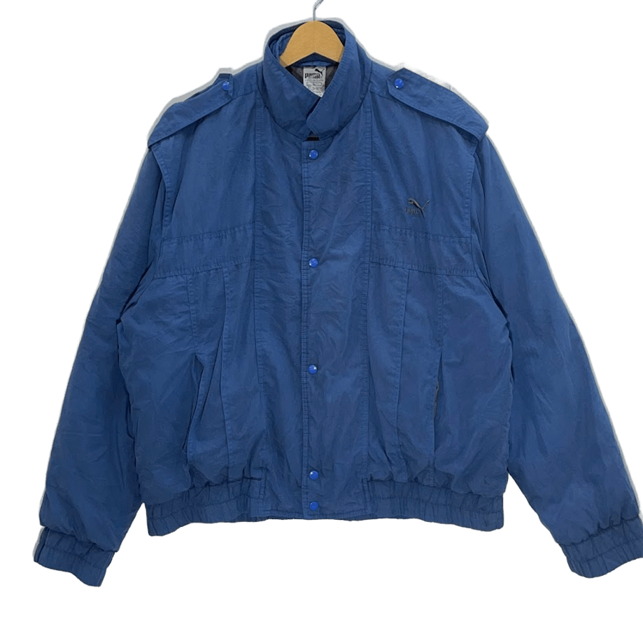 80's vintage 80年代 ヴィンテージ PUMA プーマ ジャンパー ブルゾン ジップアップ スナップボタン 中綿 アウター 長袖 ワンポイント刺繡 オーバーサイズ ビッグシルエット Lサイズ ブルー | OASISCLOTHING 海外古着屋【公式】通販サイト