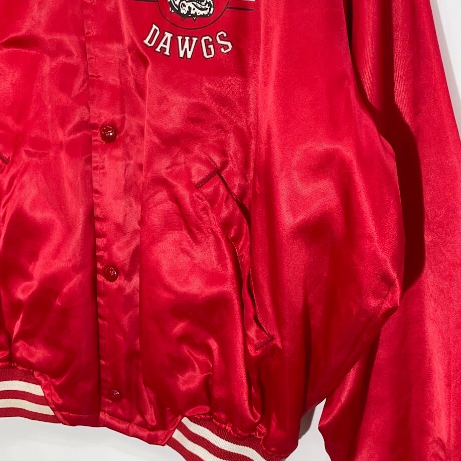 商品名:80's vintage 80年代 ヴィンテージ Chalk Lire カレッジ スタジャン ナイロンジャケット ブルゾン GEORGIA大学 ジョージア ブルドッグス ライトアウター フロントプリント オーバーサイズ U.S.A製 XLサイズ レッド