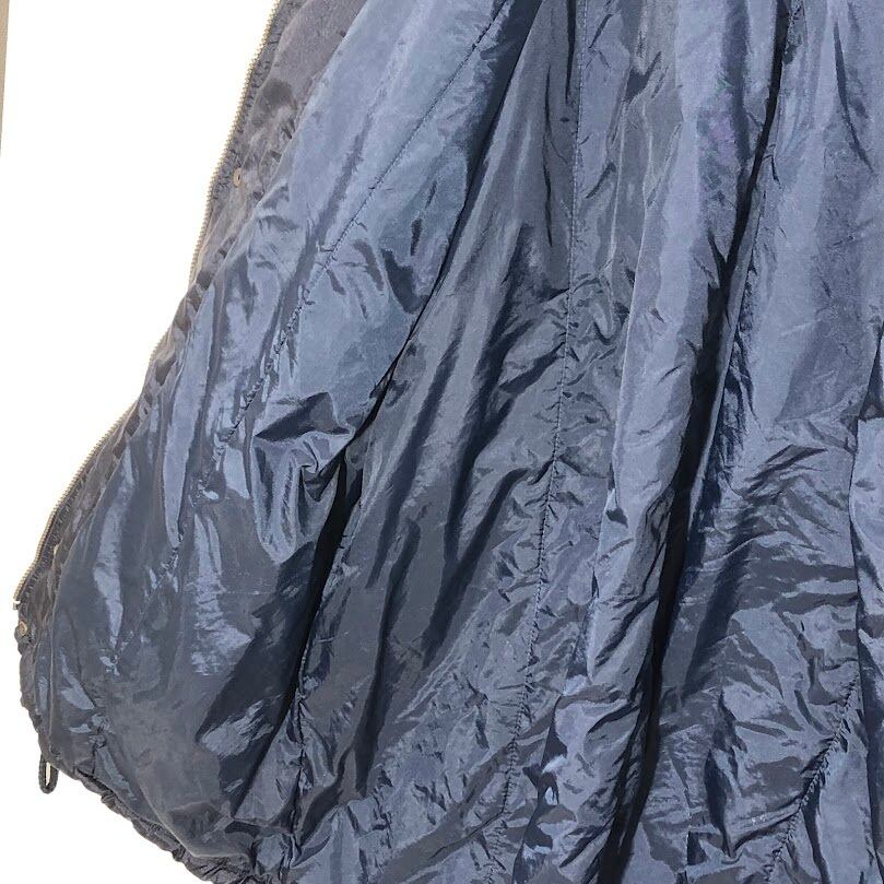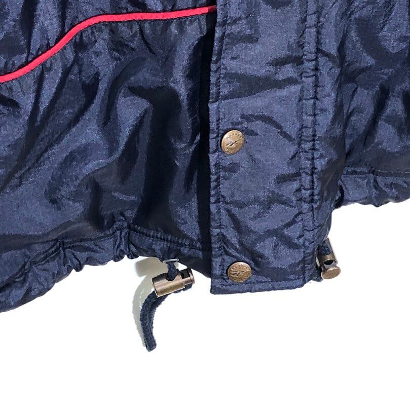 商品名: 90's vintage Reebok リーボック ナイロンジャケット ラグビー ウェールズ チーム 中綿 アウター ドローコード バックプリント 企業ロゴ刺繡 ワンポイント刺繍 オーバーサイズ ビッグシルエット INDONESIA製 XLサイズ ネイビー