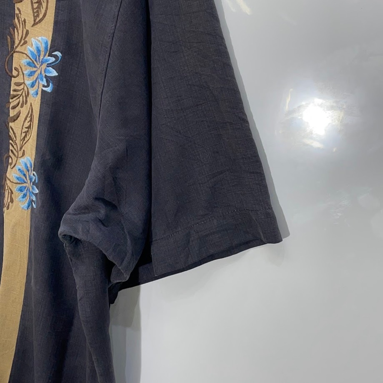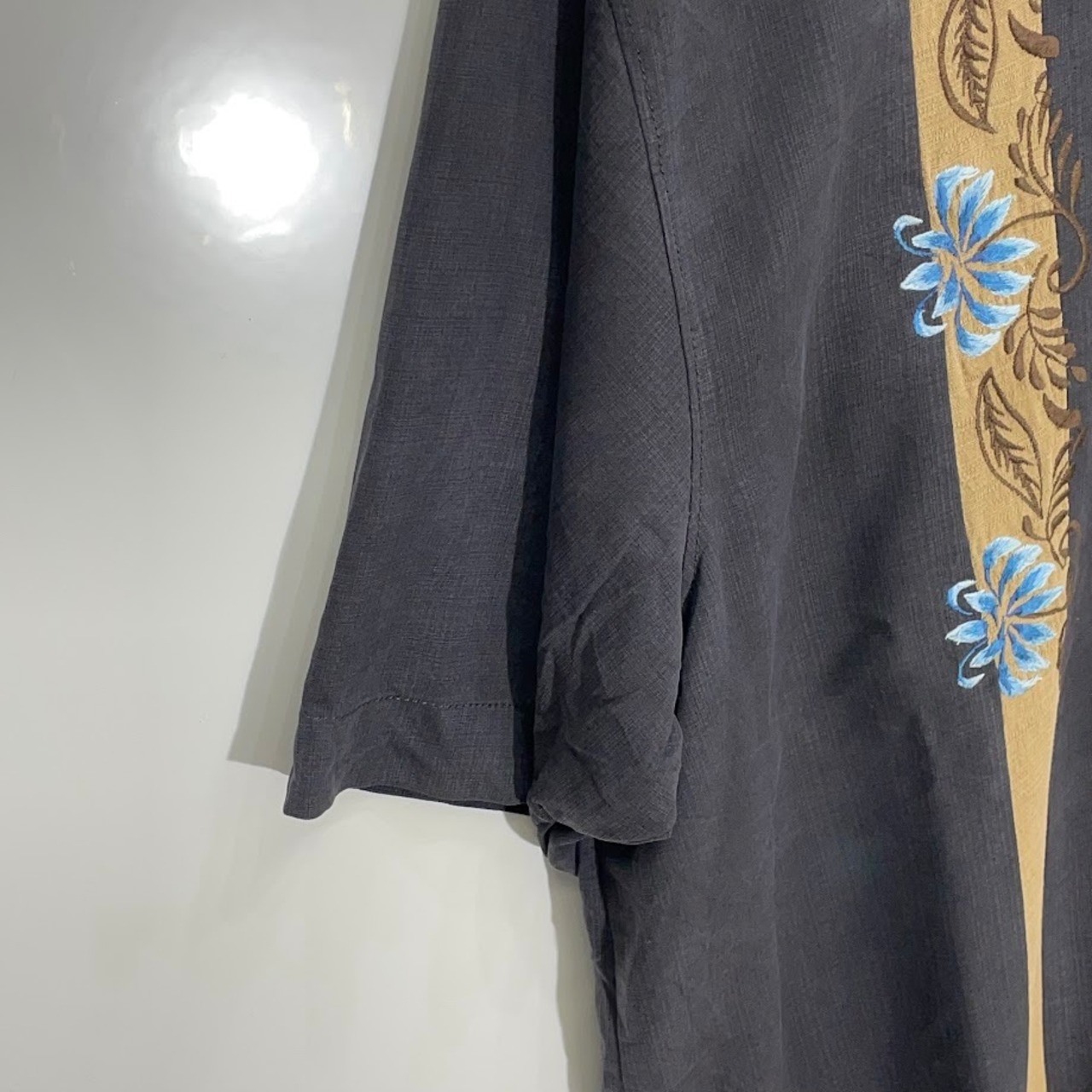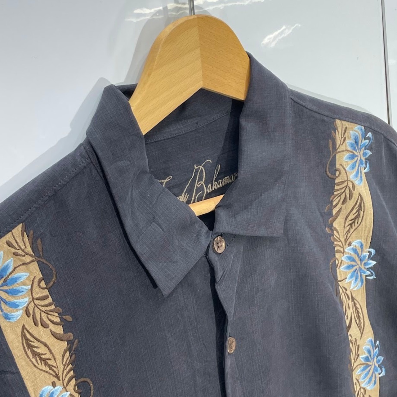 商品名:Tommy Bahama トミーバハマ キューバシャツ メキシカンシャツ シルクシャツ 半袖 シャツ ボタンダウン フロント刺繍 オーバーサイズ ビッグシルエット CHINA製 XLサイズ ブラック