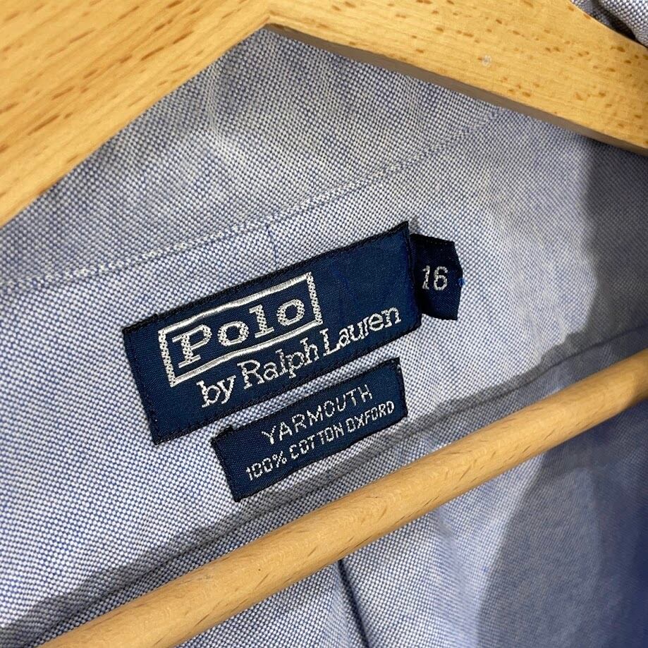 90's vintage 90年代 ヴィンテージ Polo by Ralph Lauren ポロバイラルフローレン YARMOOTH 長袖 シャツ ボタンダウン ワンポイント刺繡 オーバーサイズ ビッグシルエット ホンコン製 16サイズ ライトブルー