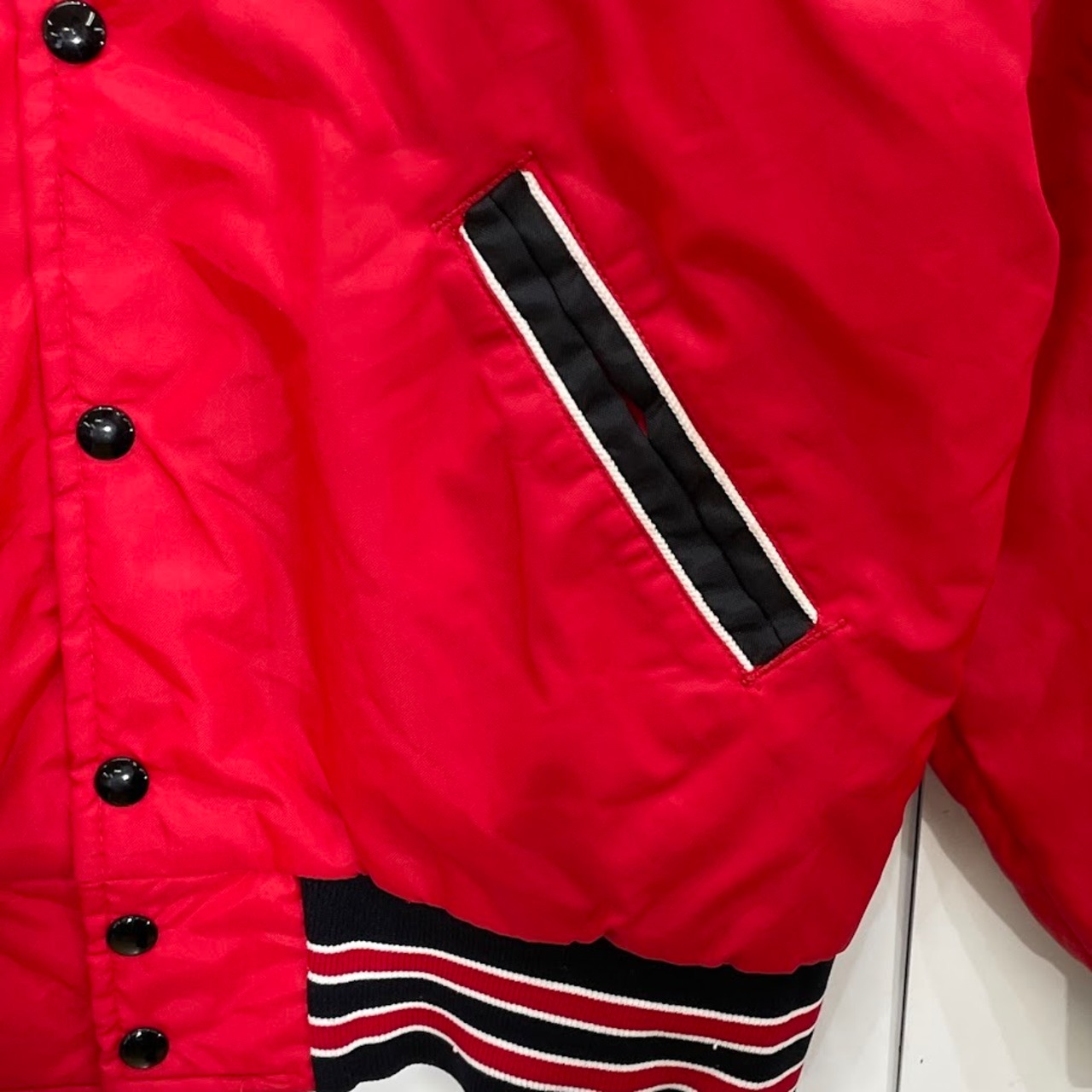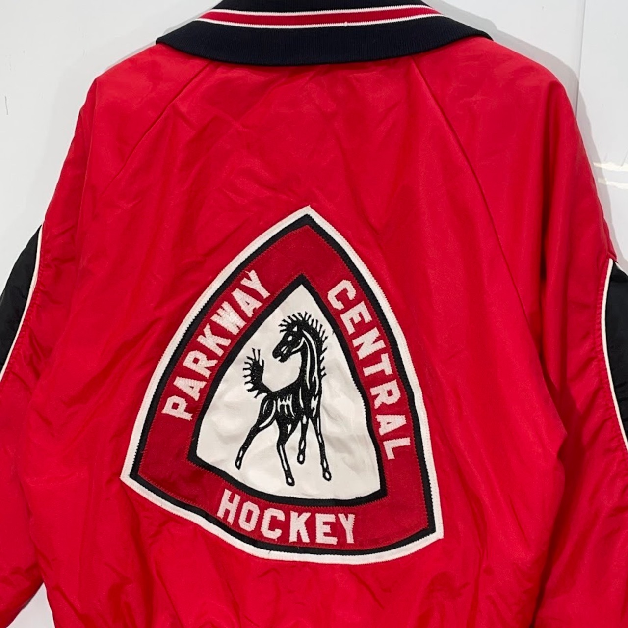 LOCKER ROOM made in USA Missy CHEERLEADER PARKWAY CENTRAL HOCKEY ナイロンジャケット ブルゾン スタジャン 中綿 キルティング アウター 企業ロゴワンポイント刺繍 USA製 メンズ S レッド | OASISCLOTHING 海外古着屋【公式】通販サイト