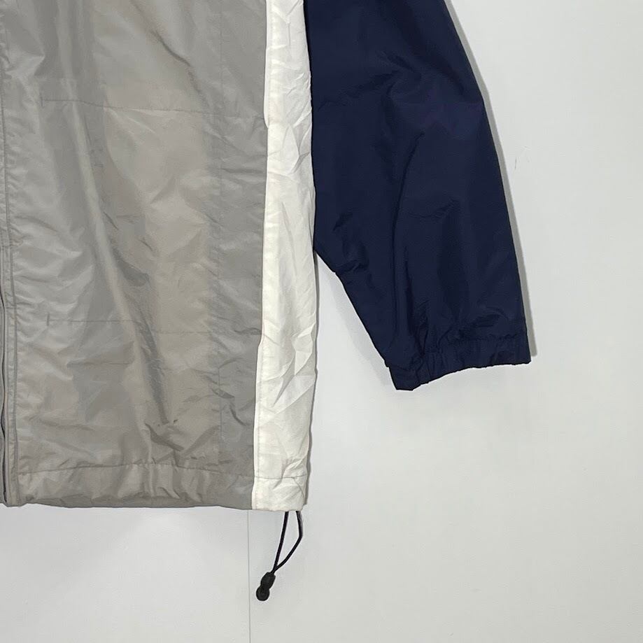 商品名: 00's NIKE/00年代 ナイキ ナイロンジャケット ウインドブレーカー フード ライトアウター ドローコード ワンポイント刺繡 オーバーサイズ ビッグシルエット ベトナム製 メンズ XL ネイビー/ホワイト/グレー